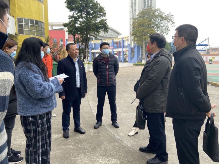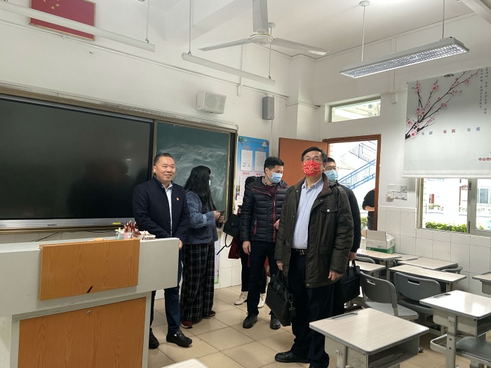 2022年2月11日上午,中山市教体局领导四级调研员黄庆财一行和南头镇教体文旅局副局长洪爱华一行到南头镇中心小学进行2022年春季开学疫情防控工作检查,指导学校开学疫情防控和校园安全工作。南头镇中心小学卫坤校长、吴婷环主任、曾立主任以及防疫组成员陪同检查。