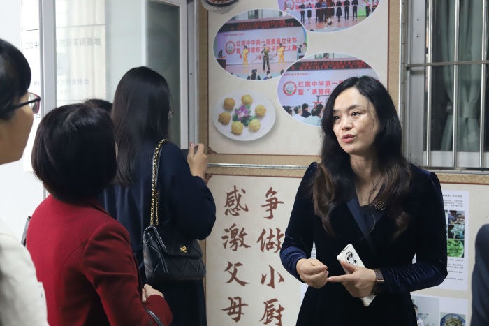 为了更好地交流,顺德区容桂镇红旗中学陈亚玲校长、钟春玲副校长、陈国佳德育主任等行政团队精心准备了劳动实践基地实地参观、劳动教育课题专题讲座、经验分享与答疑的优质交流活动,并亲自引领老师们到相应的场室参观学习。参加活动的老师们专注地聆听陈校长的介绍,认真记录开展劳动教育活动的细节,感受陈校长对学校劳动教育高瞻远瞩的总体设计,以此进行思考借鉴。