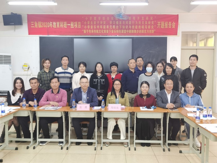 在开题报告会议中,三角镇立项课题“小学数学综合实践活动课程开发研究”负责老师吴根科、“小学生亲子冲突、学习倦怠与问题行为的关系研究”负责老师王辉副校长、“小学音乐中年级单元概念下知识与技能的唱写研究”负责老师梁咏敏以及“基于传承传统文化背景下音乐特色课堂中麒藤舞步的探究与创新”负责老师吴丽琼等四位课题主持人分别从课题的选题依据、研究框架、研究思路方法、特色创新、预期成果等方面作了开题报告。