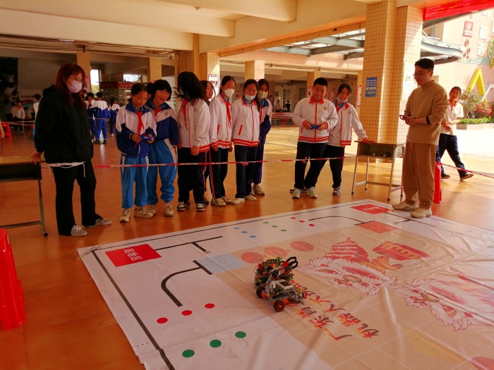 如果说设备展示区可以让同学们大饱眼福,那么,机器人体验区和模拟竞赛区就更是校园科学爱好者的天堂了。在这里,同学们不仅可以体验机器人的实际应用,还可以使用遥控器控制机器人与现场工作人员模拟竞赛。在一次次尝试和比拼中,同学们摸索出了方法,靠着对科技的理解和领悟在欢乐中取得了不错的成绩。
