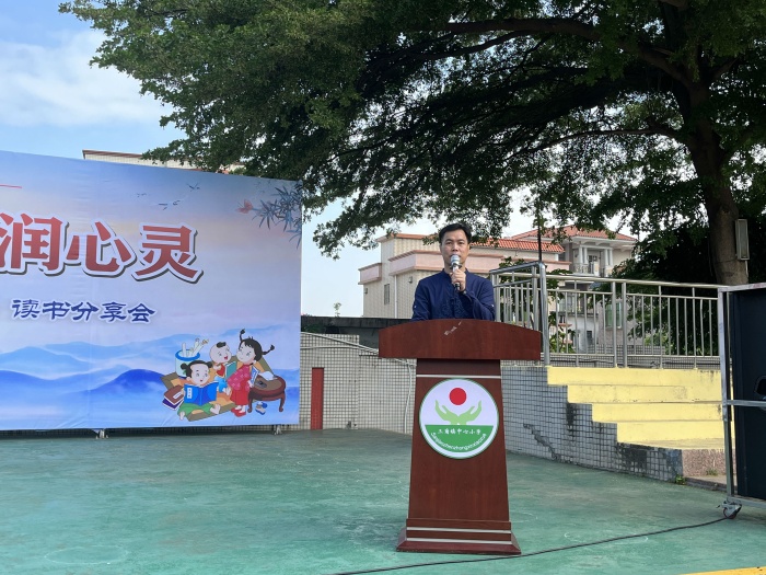 主持人黄宝盈主任宣布三角镇中心小学“经典传承文明 书香浸润心灵”第十七届读书节启动仪式暨《论语》读书分享会正式开始。
