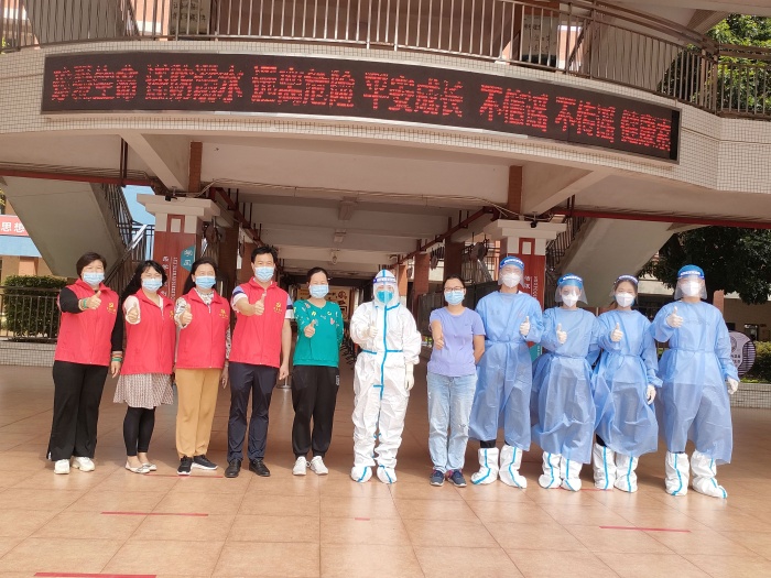 本轮核酸检测工作全体师生密切配合,仅用了两个半小时,就圆满地完成了全校一千五百多名学生的核酸检测任务。