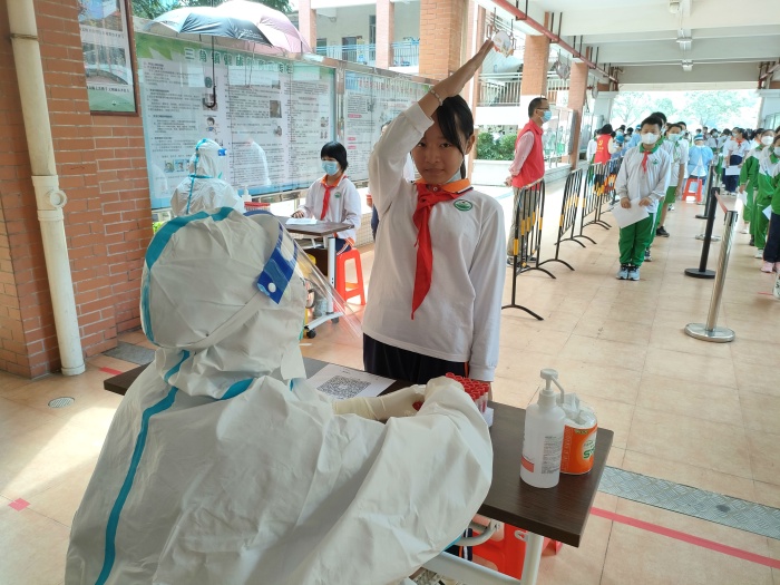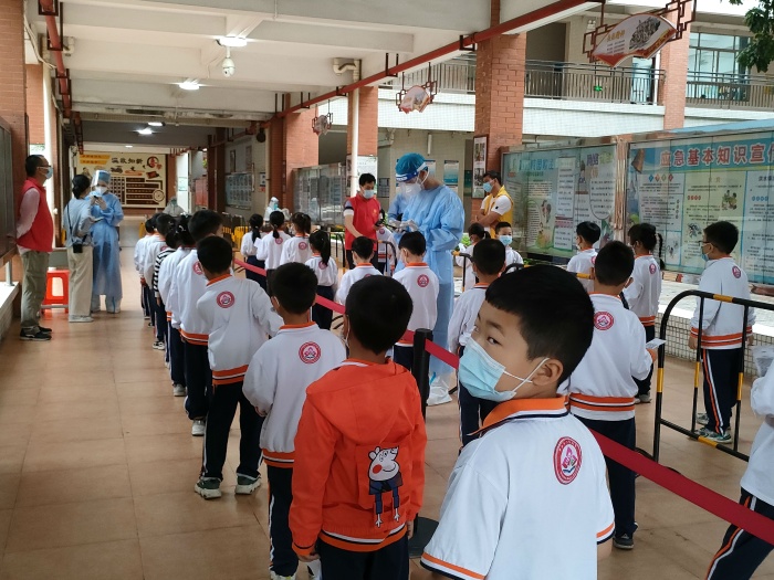 近日,新冠疫情呈现反扑现象,中山个别镇区出现本土无症状阳性病例,疫情防控工作形势严峻。为进一步筑牢校园防疫安全线,切实保障学校全体师生的生命安全,3月21日上午,遵照三角镇党委政府的有关部署,三角镇中心小学组织全校师生开展核酸检测工作。
