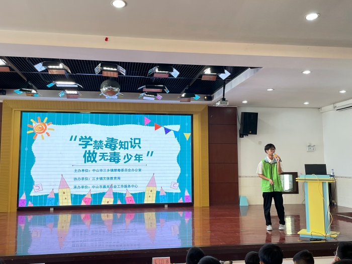 2021年9月15日上午11:00在新圩小学阶梯教室,进行了一场面向全体五年级学生的禁毒讲座,主题为“学禁毒知识,做无毒少年”。本次活动由中山市三乡镇禁毒委员会办公室主办,三乡镇文体教育局协办,由中山市晨光社会工作服务中心的志愿者们到校为同学们讲解禁毒知识。