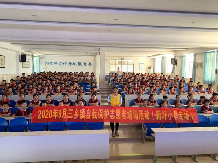 2020年9月22日下午两点十五分,中山市千喵公益传播中心和三乡镇新圩小学联合举办2020年三乡镇自我保护志愿者培训活动,活动在新圩小学顺利开展。