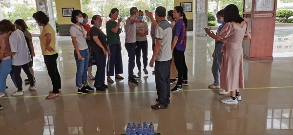 此次团康活动由德育处陈文丽主任主持,活动设置了“群龙取水”、“雷霆战鼓”两项游戏,以及“你笑起来真好看”的手语舞,以楼层办公室为小组单位进行游戏竞赛。