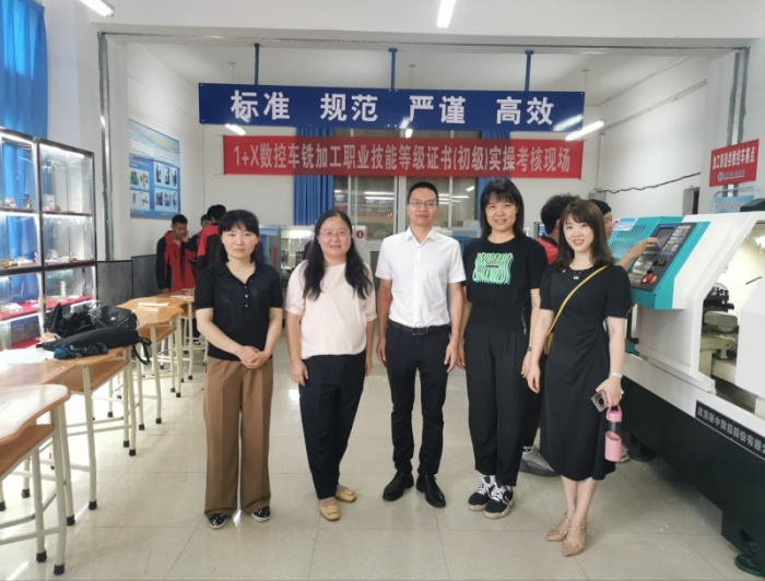 6月28日下午,盘州职校教科信息处主任严金书继续带领沙溪理工学校三名骨干教师到机电工程系实训室、服装制作专业实训室和医药卫生系实训室进行了参观交流。参观过程中,严主任分享盘州职校机电工程系建立中职体验班,让盘州的初中学校初三学生提前到盘州职校的机电工程系中职体验班学习技能,有效辅助学生竞赛梯队建设。专业教师开展跨专业融合创业,发挥工业机器人和电子商务专业相融合的优势,创新作品“互联网+传统机械制造技术”获2021年国赛优胜奖;工业机器人专业项目今年亦将代表贵州省参加技能大赛国赛。接下来,到了服装制作专业实训室,学校武文斌老师正在与服装专业老师分享工作室课堂改革的经验。最后,一行人员参观了医药卫生系实训室。