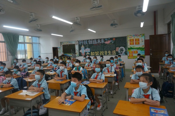 同学们在值日老师的引导下,秩序井然地进入校园。人脸识别、测温、洗手,经过层层安全的流程,同学们回到了昔日温馨的教室,开启新学期第一天的学习生活。经过这次疫情的考验,同学们成长了,有的同学早早来到教室就主动帮忙打扫卫生、整理书桌;有的同学一坐下来就拿出书本进行晨读,有的同学牢记防护知识,保持一米距离。老师们全情投入地讲解,学生们聚精会神聆听。午餐前,同学们保持1米的距离排队洗手、领餐,安静入座。老师们化身“保姆”,陪同孩子进餐及午休,并进行午检。每一个细节都彰显出学校对防疫防控工作的一丝不苟和对生命安全的无比重视。放学时间一到,孩子们在老师的组织下有序列队,保持间距,平安离校。之后,老师对教室、走廊进行打扫:消毒,擦拭桌椅、窗台、门把手,清理垃圾,化身孩子们的“安全卫士”,用爱心、细心给孩子们最好的安全保障。同学们在鸟语花香的校园里尽情地朗读,学习,开展课间活动,口罩下是一张张幸福的笑脸,口罩外是一双双渴望知识的眼睛,他们乐在其中,很快就适应了学校的学习生活。