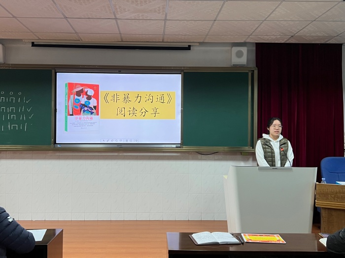 最后是钱泳宜老师的《非暴力沟通》阅读分享,她给老师们分享了什么是非暴力沟通,非暴力沟通有哪些方式?非暴力沟通对我们生活工作有哪些积极影响?通过钱老师的分享,老师们了解到非暴力沟通模式,实践下来也会带来思考问题方式的转变,我们不会再怨气冲天负能量地去抱怨指责他人,而是在自我观察剖析之后,说出自己的感受,表达自己的需求。同样,当他人在抱怨指责时,我们平静地去倾听他的感受,剖析他的需求,那么争论也能平息。这样更利于人际交往及和谐团队的建立。