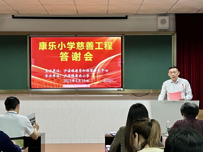 “崇文乐善、厚德进取”是沙溪人精神。2023年,中山市泸州商会爱心企业家积极为康乐小学翻新校园所有课室和一些场所,优化办学环境,为教育事业提供了大力支持,给孩子们带来了更好的学习条件。为了表达对中山市泸州商会爱心企业家们的感激之情,4月13日上午,康乐小学慈善工程答谢会在学校报告厅隆重举行。中山市沙溪镇党委书记徐成彬、副镇长余添宏、党政办主任贝鹏程、教体中心主任宁云志、中山市泸州商会会长邓明超、爱心企业家代表,以及沙溪各学校校长、康乐学校家长、教师、学生代表等近200人出席了本次慈善工程答谢会。