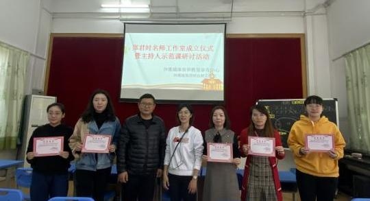 2021年12月10日上午,沙溪镇郑君时名师工作室成立仪式暨主持人示范课研讨活动在沙溪镇龙头环学校举行。沙溪镇数学名教师徐烈海及其工作室成员、郑君时数学名师工作室成员、龙头环学校数学科组全体成员参加了本次活动,工作室成员黄淑娟老师担任主持人。