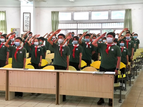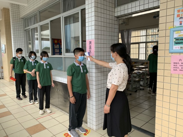 温情的迎接礼后,各班班主任、副班主任早已面戴口罩、手拿测温枪,在课室门口等待已久。必要的入班检查后,学生们端正坐在熟悉的课室里,迎来了这场与以往有所不同的开学典礼。耳边响起熟悉的国歌,队员们整齐的敬礼,同学们在视频里接受了谭瑞香校长的开学祝福,在班主任的组织下观看了复学第一课视频、学习了一日生活指南等,神采奕奕又充满专注的双眼里,写满了对课堂、对学习的渴望。