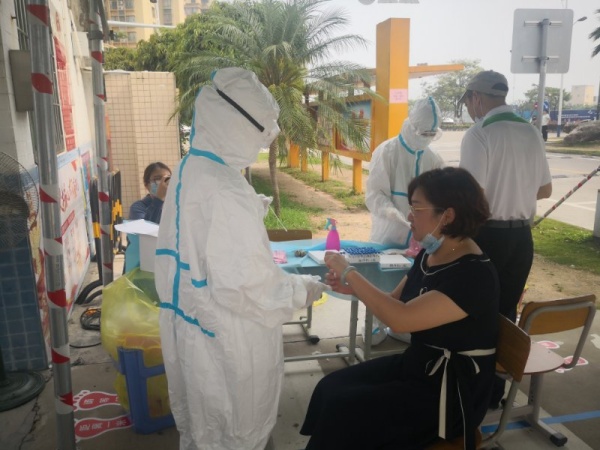 采样点设在校园门口,减少了教职工来回奔波,扎堆医院排队采样带来的感染风险,满足了神湾中心小学教职工及时、安全的采样检测需求,为学生如期返校提供了保障。
