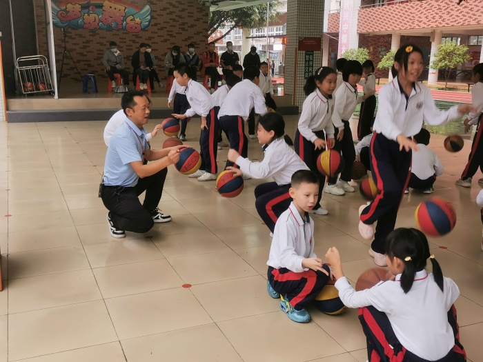 体育科组的潘杰老师执教的《篮球运球》体育课,由于下雨,上课地点从篮球场改在了达人堂,场地缩小了一半,但这丝毫不影响孩子们认真积极的学习态度,从练习动作到完成动作,教学各个环节的设计充分体现了“学、练、赛”的体育新课标,让课堂氛围更加活跃。潘老师精准的动作示范让学生很快掌握动作要领。最后学生在不断地练习中收获了运动的快乐。