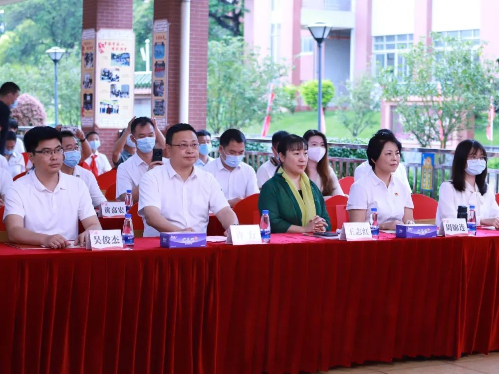 与会领导、嘉宾共同为“中山市石岐中心小学教育集团翠亨小学”揭牌,接着合照留念。