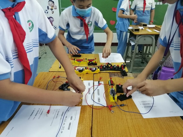 考核前,任教五年级的科学老师认真指导学生进行科学实验,学生的兴致高涨,除了在科学课上开展实验,课后也积极参加,每个实验每个学生操作起来都特别娴熟。