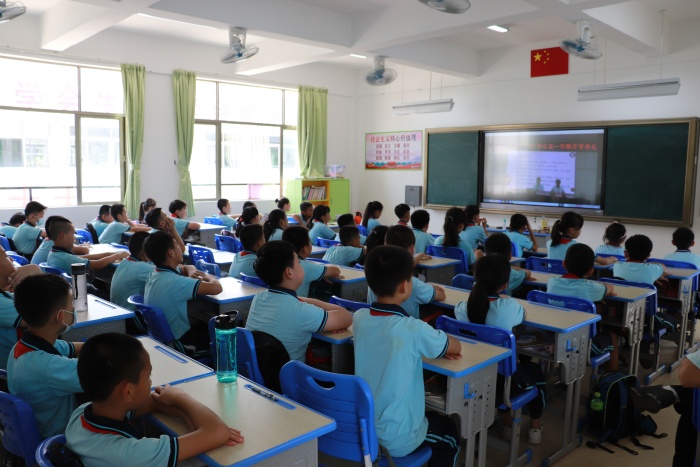 开学季在升旗仪式中拉开了序幕:鲜艳的五星红旗迎风飘扬,雄壮的歌声激荡在校园上空,挺拔的身姿中诠释着勇气和担当,坚毅的眼神里写满了中国少年强;接着,郭炳森校长为寄语新学年:他希望全体师生要有家国情怀,新学年要有新目标,勉励大家尚德善学,身体力行,努力成长为更好的自己;然后,开展了新学期专题讲座活动:李伟主任围绕安全、文明礼仪等方面向全体师生进行“同做中山人,共建文明城”助力中山创建文明城市;麦丽飞主任向全校师生送上最诚挚的祝福,并指出:“习惯成就未来”倡议大家培养良好习惯,注重自主成长。全体师生在班级收看了钉钉实况直播。