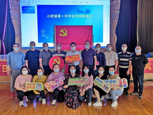 为保障核酸检测工作顺利进行,小榄一中组织党员教师作为志愿者,由吕麟校长、陈源斌副校长带领,全程配合医务人员的核酸采样工作。他们主要在等候区指引师生按顺序进入,维持现场的秩序。有的在外围区负责引导,避免出现混乱。