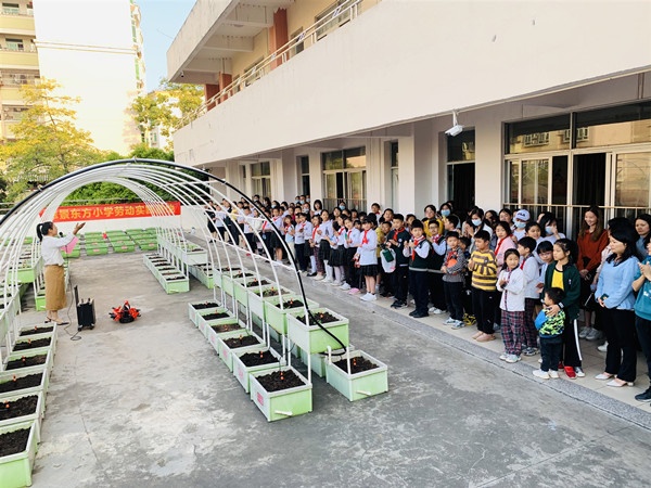 11月23日下午,翠景东方小学举办了“开心农场”劳动实践基地开播仪式。雷万兵校长、韩少兰副校长、各年级主任、各班班主任、家长代表和万谷空中农场技术人员等参加了本次活动。