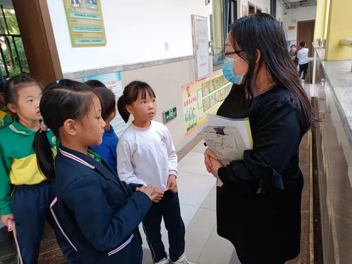 接着,罗婷婷主任走进教室、走进学生,通过问卷调查、查阅学生作业登记本和学生暖心交流等形式来了解学生在“双减”政策下的作业完成情况以及在学校的学习生活情况。