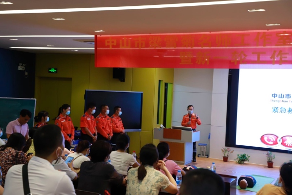 培训采用理论学习和实操训练相结合的方式展开。首先,梁部长结合专业技术和救援经验,用通俗易懂的语言,深入浅出、图文并茂地就心肺复苏的理论知识及正确的操作方法作了详细讲解。在细致讲解的过程中,还不时向在场的家长志愿者强调,急救方法必须要准确无误,避免为病患造成二次伤害,并再三强调心肺复苏实施注意事项。