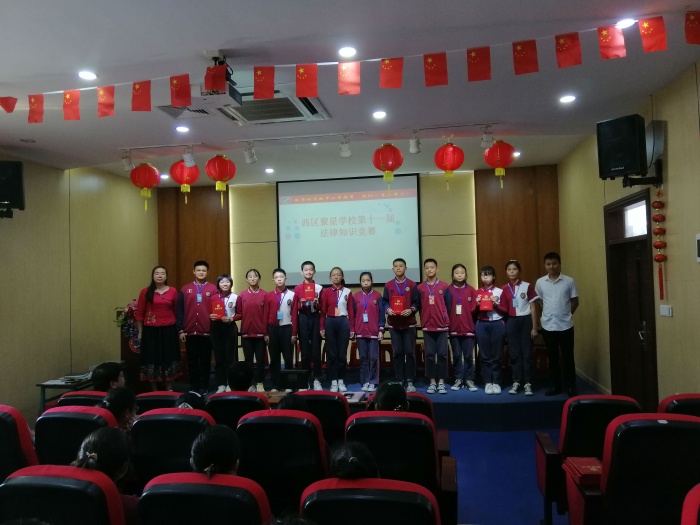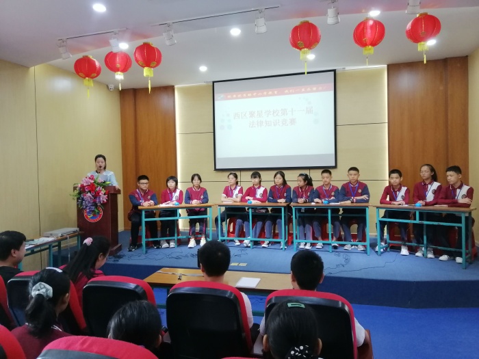 柏拉图曾说:“法律的基本意图是让公民尽可能的愉悦。”法律知识进校园,人人学法心底宽,学法用法才能让生活充满更多正能量。10月27日下午,西区聚星学校举行了中山市第十一届法律知识竞赛校园选拔赛。来自聚星学校初二级的4支队伍12名参赛选手参与选拔。德育处副主任何培根、中学教务副主任田田和政史地组的老师们担任此次比赛评委。