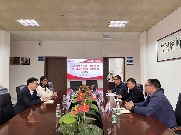 春雨润物,春风有信!2023年3月30日下午,潮州市湘桥区磷溪中学的李锐秋副校长、刘燕婵主任在中山市第二中学林国胜副校长的带领下,来到二中开展对口帮扶教育交流活动。梁学斌副校长、办公室王友福主任陪同交流。