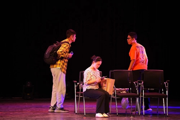 本次比赛剧目由魏媛老师选题并指导,魏老师对剧本反复斟酌并修改,合理分配角色,组织参演的学生利用课余时间积极参与排练。 本次参演的同学有杨欢欢、 王洁欣 、李其佑、劳妮娜、戴境、侯芮、黄乐儿等同学。为了在比赛时能够呈现出最出色的状态,师生们抓紧时间,在出发前进行校内排练。