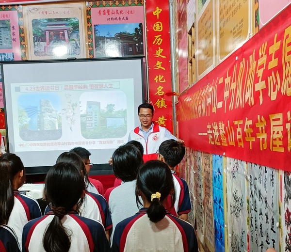 读书之乐乐何如?绿满窗前草不除。为深入推进全民阅读,营造全市书香氛围,响应中山市“创建文明城市”号召,以文化赋能乡村振兴,中山市第二中学大力推进与鳌山村“双联双助”行动。4月23日,二中师生志愿者走进鳌山村百年书屋开展“品国学经典,悟智慧人生”读书分享助学活动。