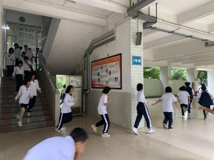 上午8点53分,随着应急警报铃声的响起,演练正式开始。各楼层值日老师第一时间迅速到岗,协助学生队伍快速、有序地撤离,各班主任正确指导学生,各班都能按要求跟着队伍迅速撤离到安全的位置。整个过程师生都能做到有秩序、行动快速,配合默契,没有出现混乱的场面,并且无任何人员伤亡。