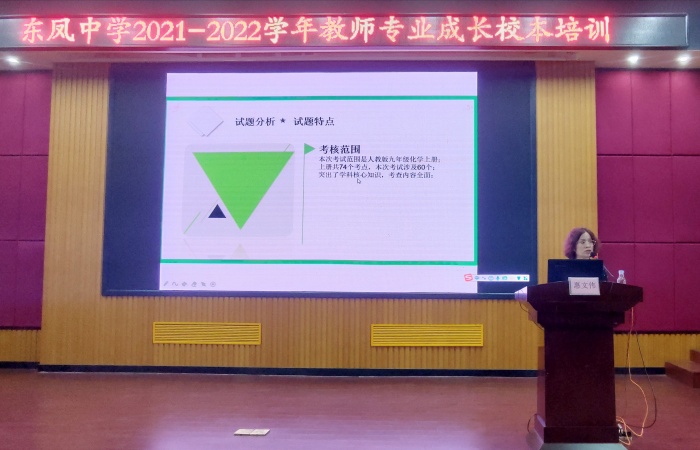 切实提高培训的实效性、针对性,是这次培训的出发点。基于此,学校安排了四个专题。一是专业素养提升专题。26日上午,东凤中学化学科组长惠文伟老师作了题为《发挥测试数据教学诊断功能,提升教学质量》的讲座,她援引实例,从试卷评价、成绩统计、学生答题情况分析、存在的主要问题和教学改进措施五个方面进行了解析,指导教师通过分析试卷,分析班级、学科成绩数据,发挥测试数据的教学诊断功能,调整、改进教学,提升教学专业素养,提升教育教学质量。接着,学校青年教师杨赐凤、邓海鹏、梁琴三位老师作了“从课堂教学竞赛中获得成长”的专题报告,虚心学习,改变思维,创新课堂教学,使得他们获得了中山市课堂教学竞赛一等奖,并从中快速成长。