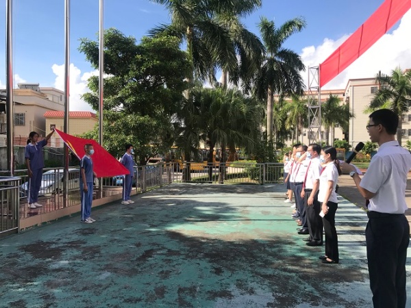 为了更加深入地学习贯彻党的十九届四中全会精神,以习近平新时代中国特色社会主义思想为指引,牢牢把握“不忘初心、牢记使命”这一主题,在建党九十九周年之际,2020年7月1日,中山市阜沙鹏诚学校党支部结合学校实际工作,在校长的鼎力支持和德育处的大力协助下,组织开展了庆祝建党99周年系列主题活动之升旗仪式。全体在职党员、全校教职工和学生一共2600多人参与本次活动。