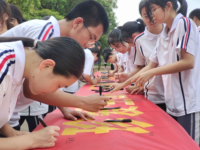 疏散演练结束后,港口中学刘素仪老师就五一假期安全问题对全体同学作了强调。不仅要注意常规安全问题,还要坚决杜绝假期私自外出游泳,预防溺水事件发生;假期出行要谨防交通安全事故的发生。除此之外,他还呼吁大家,严格遵守防疫要求,切实做到非必要不离市、不出省,不前往中、高风险地区。过一个健康、平安、愉快、充实的“五一”假期。紧接着,港口中学学生代表温婉菁带领全体同学一起举手承诺防溺水“六不准”。随后各班同学有序地在“珍爱生命,远离水域,预防溺水,从我做起。”的横幅上郑重地签上了自己的姓名,共同承诺远离水域,携手构筑起预防溺水伤害的坚固屏障。