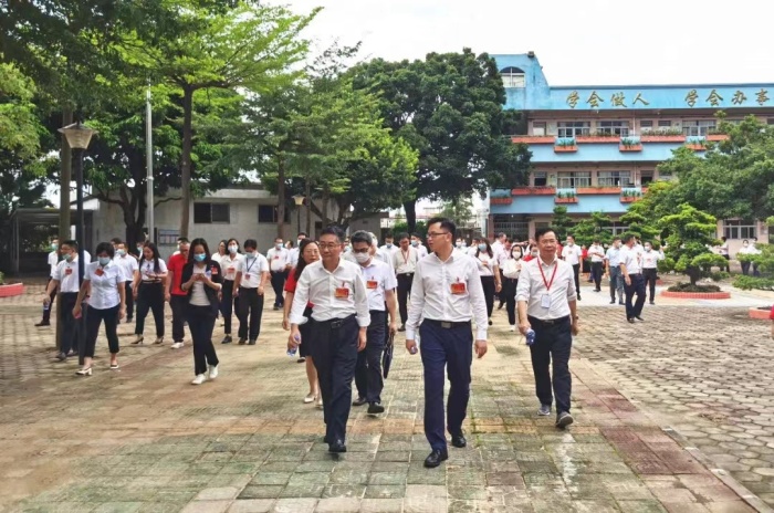 为深入落实学校教育设施优化工作,助力港口镇教育高质量发展。8月18日下午,港口镇党委副书记、镇长周昭坚带领镇人大代表共一百二十多人莅临港口中学,对优化提升学校教育设施建设进行视察指导。