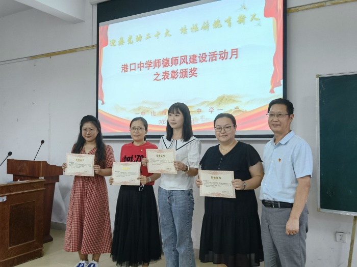 表彰先进、树立典型是为了更好地强化师德师风建设,促进教育教学发展。今后,港口中学将坚持把师德师风建设作为一项长期的重点工作,将以更有力的工作措施,更大的干劲,树立师德典型,搞好师德培训,加强青年教师师德管理,建立健全长效工作机制,要求每位教师以德立身、以德立学、以德施教、以德育德,更好地落实立德树人的根本任务,办好人民满意的教育。