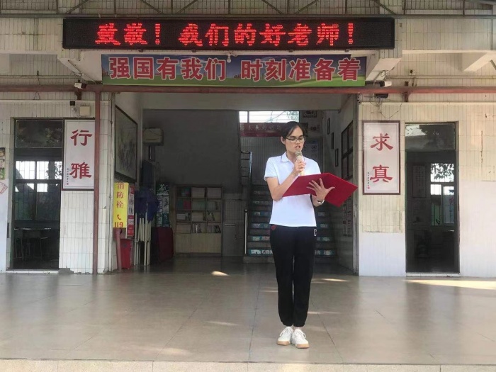 9月9日早上,全校师生集中到操场进行了感念师恩主题教育活动。本次活动由德育处主任陈金祥主持,首先由教导处陈春霞主任致辞,她希望教师们牢记教书育人的使命,不断提高教育水平,赓续百年初心,为实现教育强国的理想做出自己应有的贡献;希望同学们记住教过自己的恩师,每天用实际行动去回报老师们的辛勤付出。接着学生代表——吴羽彤,黄雨轩2位同学朗诵《感谢老师》,汪昕怡同学歌唱《每当我走过老师窗前》热情讴歌辛勤付出的园丁,以最真诚的心祝福全体老师“教师节快乐!”