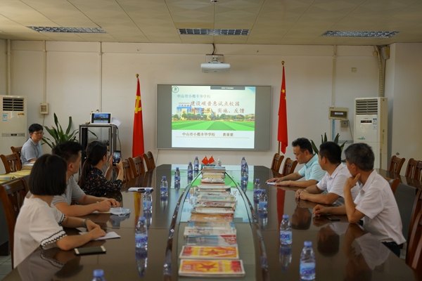 6月30日,中山市生态环境局大气与应对气候变化科科长萧学谦、谭晓欣老师,中山市生态环境局小榄分局简雪燕老师。冒着炎热的高温,来到了丰华学校,对“建设碳普惠试点校园”项目的进展进行现场考察、督查工作。