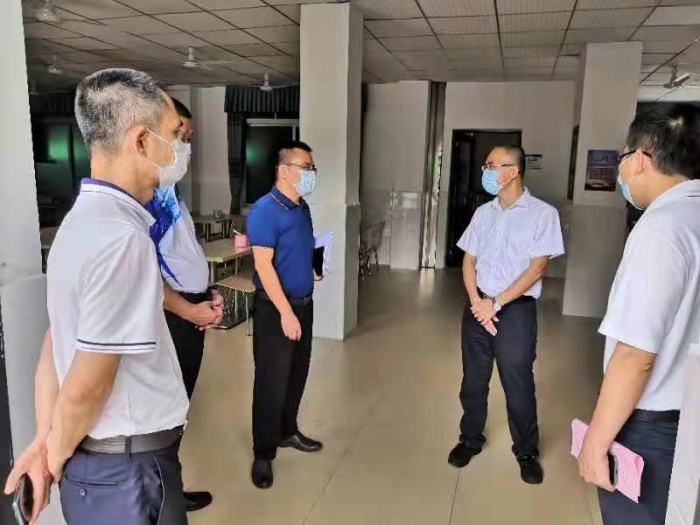 民众中学胡留全校长向督导组成员汇报了新学期开学民众中学在教师到岗、学生食堂以及校园卫生防疫安全等工作情况进行了汇报。督导组领导重点了解学校教师办公室、学生课室、学校食堂以及学校各功能室的消毒、卫生等防疫情况,实地查看了物资储备室等场所设置,对民众中学在疫情防控期间的科学防控措施进行了细致指导,并对民众中学食堂系统及各项台账、物资储备等情况进行了详细检查。