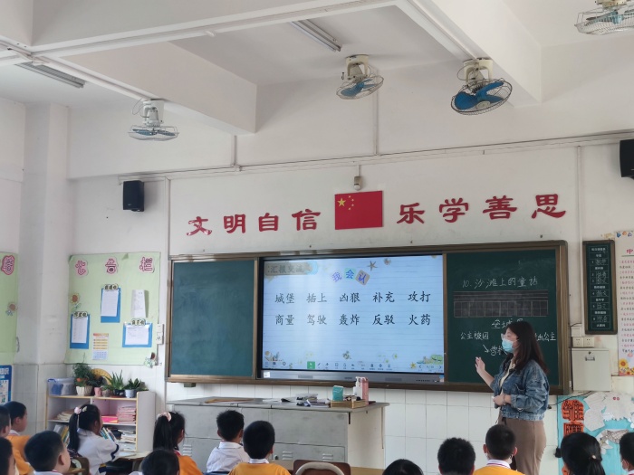 3月31日下午,春意浓浓,我校语文科组开展了结合信息工程2.0识字教学研讨活动,谭晓彤老师在二(2)班用“随文识字”的形式呈现了一堂精彩纷呈的识字写字公开课。南朗小学语文组教师参与听课,共同学习。
