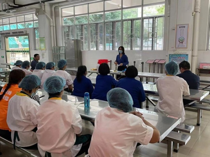 随后,谭校医强调要严格落实全校师生、员工(尤其是高风险员工如厨工、保育员等)的症状监测;加强晨午(晚)检、因病缺勤登记和病因追踪,及时发现疫情和报告;科学处理呕吐物;做好清洁消毒工作(尤其是环境表面如门把手、扶手、公共区域洗手间等消毒)防止病毒在校内扩散。同时,做好学校内食品、食堂安全卫生、校内食物生产加工环境的管理工作。