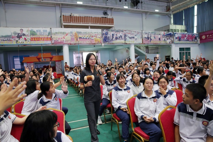 为了激发同学们对学习了解法律的兴趣,中山市第一人民法院审判管理办公室法官助理吴娟欢为大家开展民法典普法互动活动。同学们踊跃举手发言提问,现场气氛热烈,掌声不断。