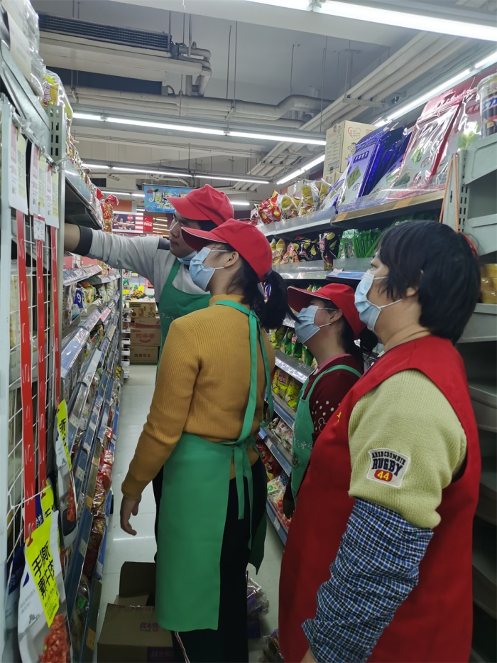 知之愈明,则行之愈笃。为了推动培高年级职业教育发展,提高学生的职业能力和职业意识,1月6日,培高年级超市技能课授课教师黄霞老师和樊老师带领6名学生到置禾超市进行为期半天的跟岗实习。