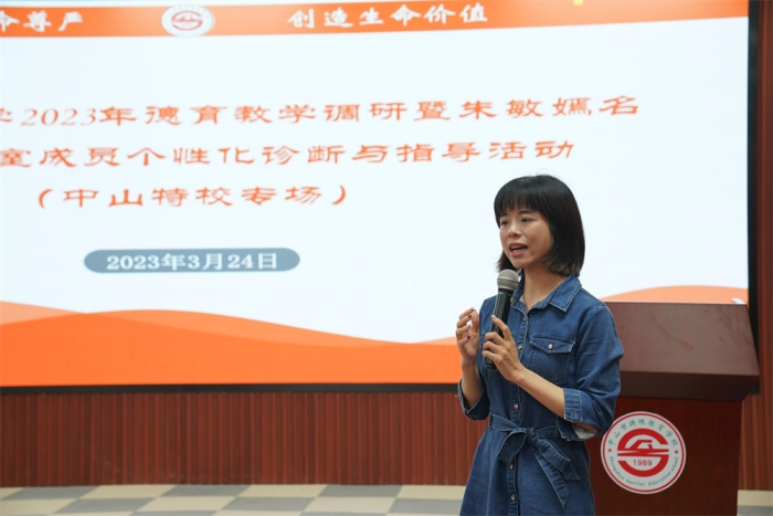 草木蔓发,春山可望。3月24日下午,中山市中小学2023年德育教学调研活动暨朱敏嫣名教师工作室成员个性化诊断与指导活动(中山特校专场)在一楼阶梯教室如期举行。中山市教育教学研究室中小学德育教研员朱敏嫣和朱敏嫣名师工作室部分成员、镇街德育专干代表、多所学校的德育行政和思政教师齐聚一堂,共话德育发展。中山特校党总支书记、校长卢超文,市特殊教育指导中心常务副主任林开仪,中山特校德育处副主任芮露以及各年级级长、中队辅导员和班主任代表参加活动。活动由中山特校李园林副校长主持。