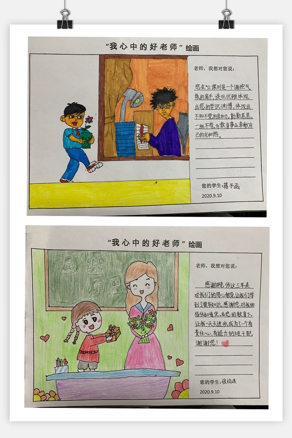 教师不忘初心,立德树人,学生们更难忘师恩。学校开展了以“我心中的好老师”为题的绘画活动,学生们纷纷画出了他们心目中老师的模样,并为老师写上了满满的祝福与感谢。与此同时,学校的学生礼仪队一早便整齐站立于校门口,手捧鲜花,代表全体学生为老师们送上节日的祝福。学生满满的祝福与感恩声让整个校园充满了温馨与爱。