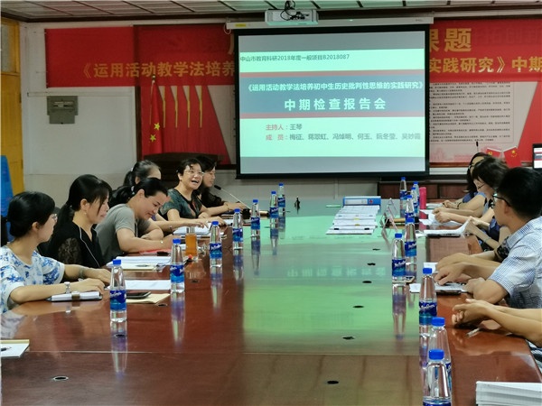 9月8日下午,启发中学举行历史市级立项课题《运用活动教学法培养初中生历史批判性思维的实践研究》中期检查报告会。参加本次报告会的有中山市教研室历史教研员、广东省特级教师、正高级教师、广东省历史学科带头人楼卫琴老师,石岐区教学研究主任陈再玲老师,中山市初中历史学科带头人、中山市骨干教师梁玉萍老师,启发中学祝玉珍副校长,教导主任邓小斐,以及课题组全体成员。