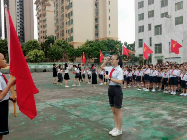 2019年5月31日,中山市火炬开发区新苗学校的校园里,队歌嘹亮。一年级和六年级的全体师生聚集在国旗下,举行了隆重的新队员入队仪式。