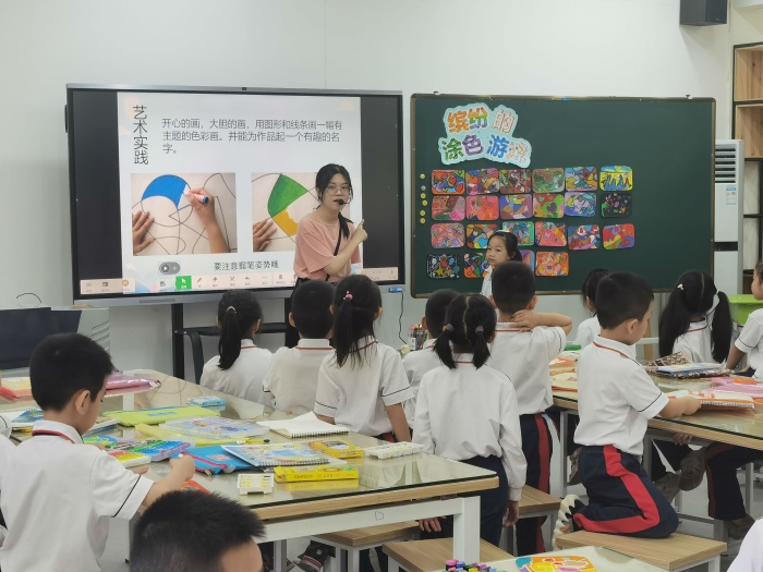 线描是石岐实验小学的美术特色课程,活动以“线描特色与课堂教学相融合”为主题。吴媛媛老师和陈康尧老师合作完成《夏日的凉风》两个课时讲授,张靖贤老师和一(4)班的孩子带来《缤纷的涂色游戏》,三节教研课各有各的精彩。