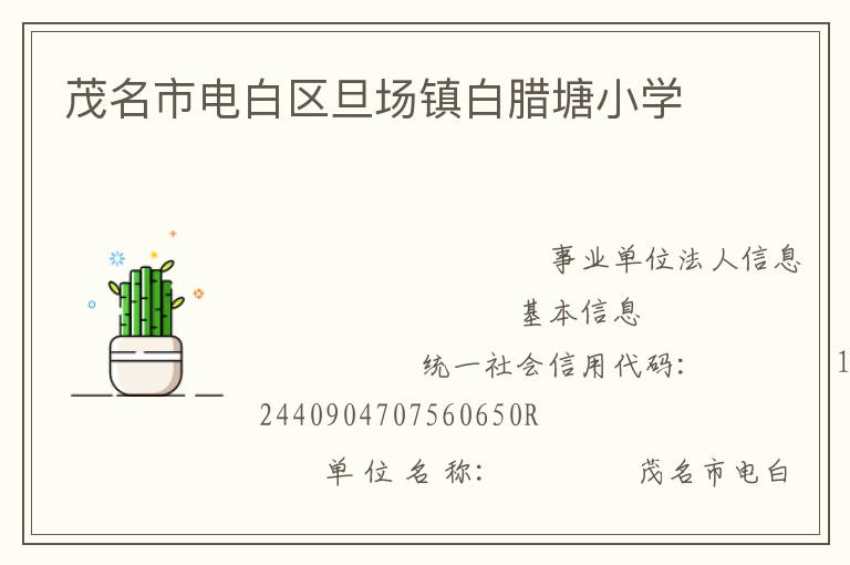 | 登记管理机关: | 茂名市电白区事业单位登记管理局 | ||