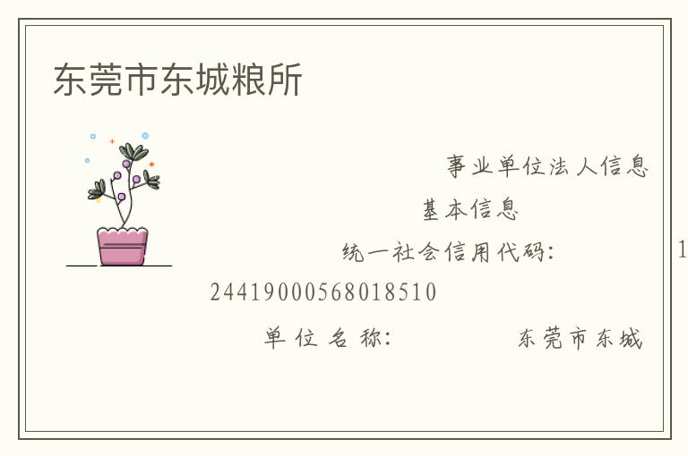 | 单 位 名 称: | 东莞市东城粮所 | ||