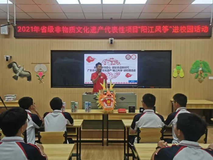 9月15日下午,省级非物质文化遗产“阳江风筝”进校园活动走进阳江市阳东区第二中学,该校高一级部分学子在阳江风筝项目省级传承人的带领下度过了难忘的时光。此活动促进了学子们对阳江本土特色文化之阳江风筝的全新认知,进一步加深了对非遗文化的理解,强化了对弘扬中华优秀传统文化的责任意识。